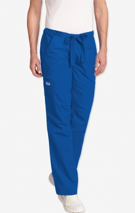 65% Polyester/35% Cotton Poplin A casual Unisex Traditional fit pant features a natural rise and an adjustable webbed drawstring at the waist, one back pocket, and a cargo pocket with an inside cell phone pocket. -Unisex Traditional fit-Natural rise-3 pockets: 1 double cargo pocket, 1 back pocket-Drawstring waist-Straight leg Leg opening, size M: 18.5" Regular inseam: 31" Also available in Short (28.5") and Tall (34")