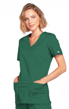 55% Cotton/42% Polyester/3% Spandex Twill A Modern Classic fit mock wrap top features front princess seams and double needle top stitch detail. Also included are front patch pockets, a right side pocket with a sectional pocket and I.D. loop, and a left side pocket with an instrument loop holder across pocket. Back princess seams and side vents complete the picture. -Modern Classic fit -3 Pockets: 2 patch pockets, pen slot, 1 sectional patch...