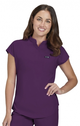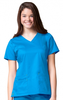 100% micro-fiber mechanical stretch - Asymmetrical mock wrap top- 2 top-loading lower double pockets with sectional pocket- Cell phone pocket- Utility pocket and pen slot- WonderWink silicone ring- Shoulder badge loop- Side vents Women's Modern Fit and True-Plus fit