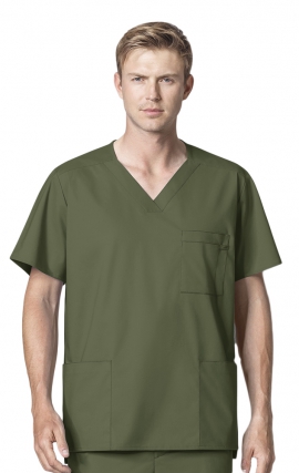 Fabric is 65% polyester/35% cotton active twill.Medium center back length: 31"XS - 5XL Extra length means the WonderWORK men’s V-neck scrub top provides you added coverage during bending and stretching. The modified V neckline and shoulder detail enhance the masculine appearance of this top, which also sports large chest and front patch pockets for all your gear. - V-neck- Sporty shoulder detailing- 4 pockets: 1 double chest pocket, 2 large...