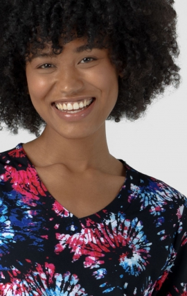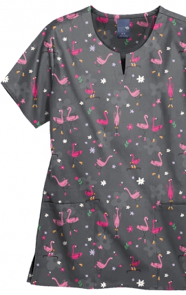 92% Polyester/8% Spandex Zoe and Chloe Scrubs continues to bring you beautiful print scrub tops with the classic Zoe and Chloe fit that you love. The stylish notch neckline isn’t your typical v-neckline and adds a unique style feature to your medical scrubs uniform. This Women’s Notch Neck Print Top is made with a polyester/spandex fabric that is super comfortable and flexible. The side hem vents are a small addition but a big deal when it...