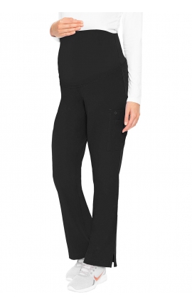 76% Polyester/21% Rayon/3% Spandex This Maternity fit pant has a soft, dyed-to-match jersey knit high rise waist panel for belly coverage. There are three pockets for storage: one cargo pocket, one welt accessory pocket layered on the cargo pocket, and one welt back pocket. Straight leg with side vents at hem. -Maternity fit-Pull-on knit waistband designed for coverage and growth-Mid rise pant body for maximum comfort-3 pockets: 1 back welt...