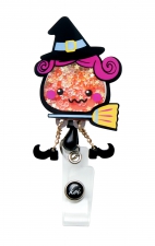 A156 koi Retractable Shaker Badge Reel - Candy Corn Witch
