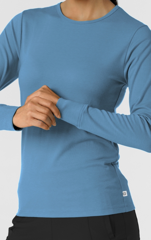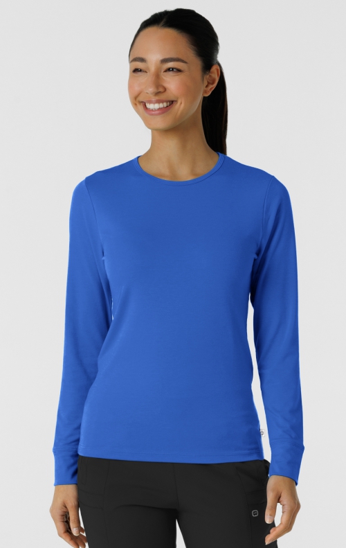 This women's long sleeve top is an everyday staple you can rely on for the comfort and performance you need to give your patients your best during every shift. Made from comfortable fabric, it's ideal for layering on chilly days or when you just want a bit of extra softness against your skin. Wear it under your scrub top or wear it all on its own for a clean, minimalist look. It's stretchy enough to give you room to move, but it holds its shape wear after wear. The simple crewneck keeps the silhouette classic, and a tagless design keeps you focused on the task at hand, not on your clothes. This tee is so versatile and comfortable that it just might become your go-to for days off too.