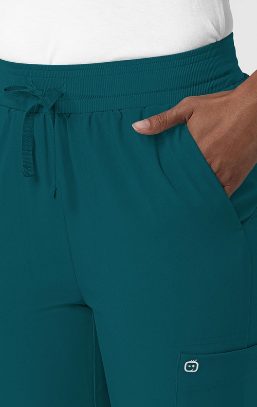Designed for unparalleled comfort and mobility, our Wink Women's Flex-n-Reach Track Scrub pants will become your new workwear essential. Crafted with a luxurious four-way stretch fabric, they feel as cozy as your cherished yoga leggings. The jogger-style cut, with knit inserts at the calf, allows you to move freely, ensuring every task is a breeze. Say goodbye to restrictive work attire, thanks to our innovative Flex-n-Reach panels strategically placed to provide extra stretch where you need it most. A knit waistband, complete with an adjustable drawstring, offers all-day comfort, so you can focus on your job, not your attire. With a multitude of pockets, including cargo and utility loops, your essentials are always within reach. Stay organized and ready for action as you conquer your day. Experience unmatched style, comfort, and practicality with the Wink Flex-n-Reach Track Scrub Pant. Work never felt this good.