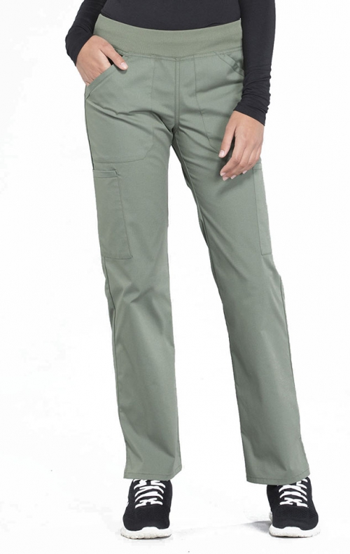 A Modern Classic fit, mid rise, straight leg pant features a comfort-fit rib-knit waistband reinforced with inside elastic for extra support. Also featured front patch pockets, two cargo pockets, two back pockets and side vents.