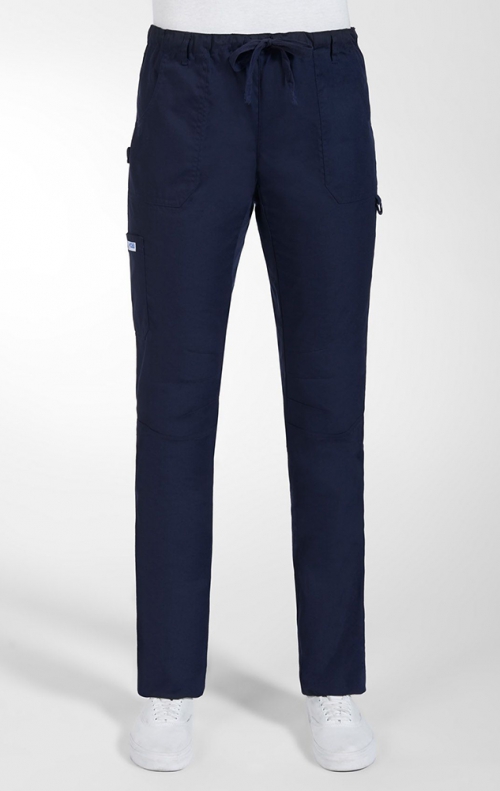 This pant is the perfect combination of function and flow. The waistband is both elastic and drawstring making it comfortable at any rise. It has multiple pockets including a pocket for scissors and features multi-needle stitching for durability. Length is Petite 28". Fabric is poly/cotton 65/35. Sizing XS to 2XL.