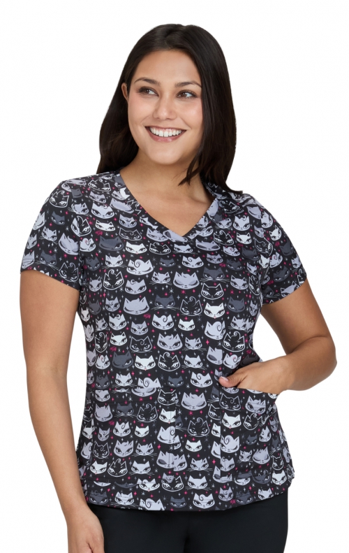 This sporty, contemporary stretch print scrub top from the koi Artists Series is part of koi's awesome and exclusive collab with the lifestyle brand Fluff. Created by artist Claudette Barjoud, aka Miss Fluff, the brand takes inspiration from all things vintage, including classic cartoons and toys, rockabilly, pin-up art, and mid-century modern design.