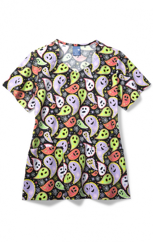 The Zoe + Chloe Diamond Neck Print Scrub Top adds an element of charm to your workday! This friendly themed top features a colorful design and is made with soft fabric to keep you comfy throughout the workday. Two spacious pockets make it easy to store important accessories.