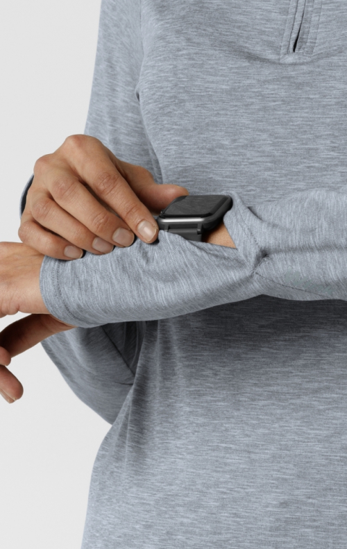Designed for modern healthcare pros, this sleek quarter-zip combines comfort with practicality. The soft, stretchy fabric blend ensures all-day coziness, while the athletic fit and mock neck give a streamlined, professional look. Unique smart watch windows at each wrist keep your watch visible and accessible, so you can track steps, check texts, and stay on top of it all without missing a beat.