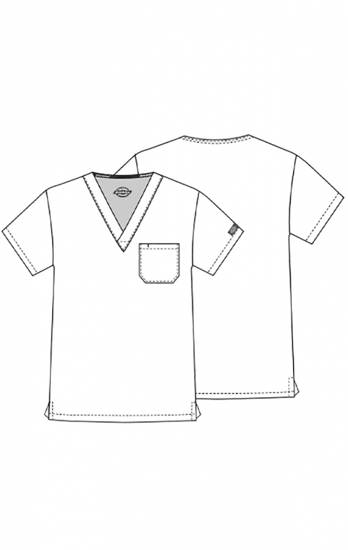 Unisex Fit, V-neck top features Dickies logo twill tape at the back neck, a front chest pocket with a bar-tacked pencil slot and side vents. This style looks great tucked in or untucked.