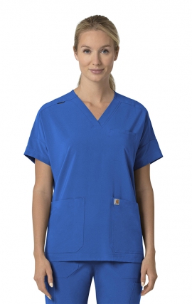 Haut pratique à col en v conçu pour le mouvement Restez connecté et prêt à faire face aux exigences de votre quart de travail avec ce haut à col en V pour femmes. Le mélange de...