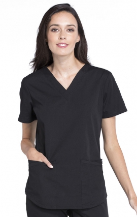 Étirement mécanique 100% microfibre - Chargement du dessus 4 poches inférieures- Boucle d’utilitaire cachée- Bague en silicone Wonderwink- Boucle d’insigne d’épaule- Évents latéraux Coupe moderne et Fidèle à la Taille pour Femme