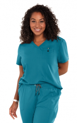 Si tu dois porter des uniformes pour travailler, ne devrais-tu pas les aimer? Il y a beaucoup à aimer de ce haut élégant avec col en V large, extensible en 4 sens et un...