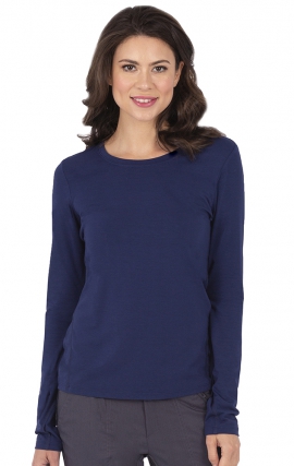 48 % poly / 48 % rayonne / 4 % Spandex -Ajustement moderne-Col rond-Boucles de pouce-Tissu extensible en tricot Lux Longueur du corps - 25 po