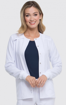 Ce Manteau à réchauffement Zoe + Chloé à col rond est dotée d'une fermeture à pression sur le devant et de confortables poignets en tricot stretch. Tandis que deux poches plaquées supplémentaires vous donnent beaucoup d'espace pour vos instruments médicaux. Les fentes latérales sont incluses pour plus de flexibilité. 92 % polyester / 8 % Spandex- Col rond-Teint pour correspondre à la fermeture à pression-Poignet en tricot côte...