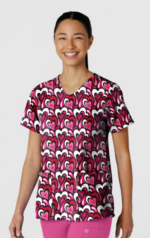 6147 WINK Haut Imprimé à 2 Poches et Col en V - Heart Flow