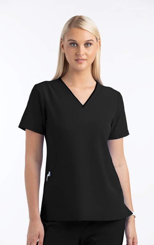 *FINAL SALE XXS 4510-Petite Matrix Impulse Haut à Col en V Courbé Contrasté pour Femmes par Maevn
