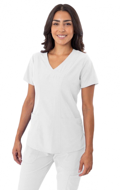 *VENTE FINALE 18-1064 Haut d’uniform Greentown avec étirement à quatre-sens et encolure Sweetheart