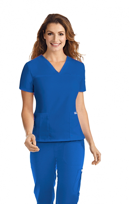 Un superbe haut à col en V arrondi avec une silhouette en sablier. Il présente des manches flexibles et des panneaux latéraux avec un détail de manches de capuchon froncé. Il a également 2 poches cachées et une couture personnalisée pour un ajustement parfait.