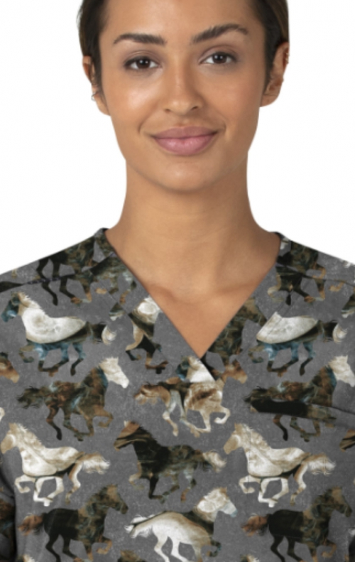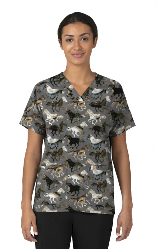 *VENTE FINALE C13314 Carhartt Force Cross-Flex Haut Imprimer Surdimensionné à Col en V pour Femmes - Filly Trot Pewter