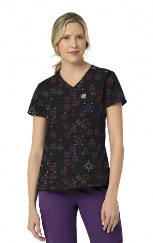 *VENTE FINALE C13014 Carhartt Force Cross-Flex Haut à Coupe Moderne Imprimé pour Femmes à Border - Winter Quilt Black