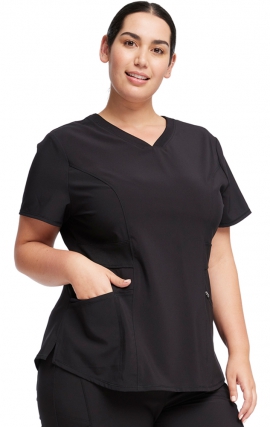 73 % polyester, 22 % rayonne, 5 % sergé stretch Spandex C’est peut-être votre nouveau haut d'uniform préféré. Ce haut contemporain à col en V est super confortable avec un...