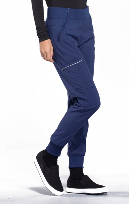 Ce jogger à taille moyenne de coupe contemporaine est doté d'une taille élastique en tricot côtelé, de poches zippées à l'avant, d'une poche cargo avec bande réfléchissante, de deux poches arrière plaquées, de bandes de jambe en tricot côtelé pour une longueur réglable et de surpiqûres sur toute la longueur. Entrejambe : 28 1/2". Le tissu popeline extensible confortable et le tricot côtelé super extensible sont les combinaisons parfaites pour les professionnels de la santé.