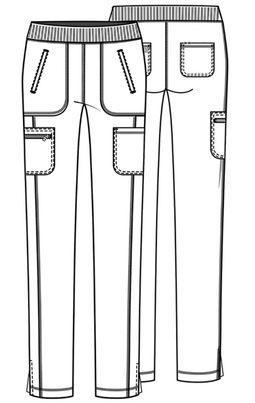 Ce pantalon à taille moyenne et à jambe fuselée est doté d'un style à enfiler, d'une ceinture en tricot côtelé, de poches passepoilées et cargo à l'avant, de poches arrière plaquées et de fentes latérales à l'ourlet pour faciliter les mouvements. Coupe contemporaine. Ouverture de jambe : 14". Entrejambe : Petite 28"