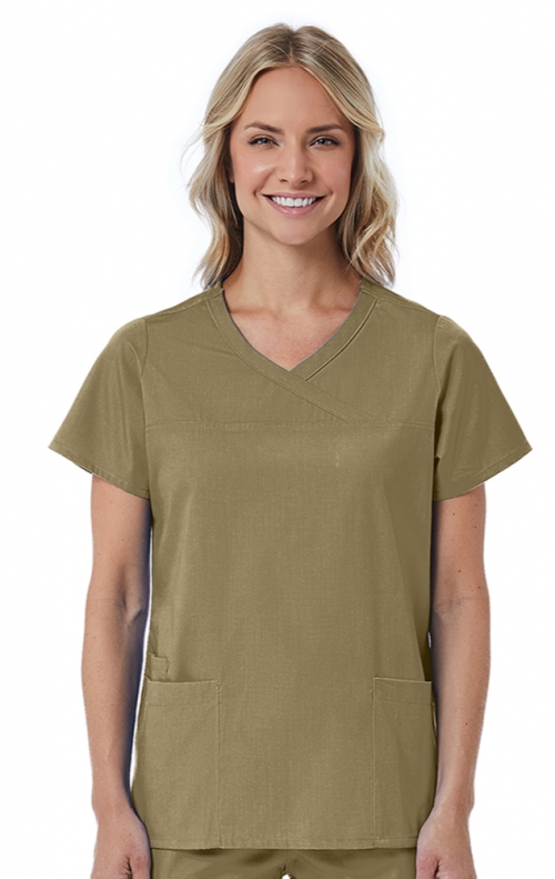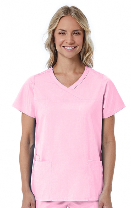 1726 Red Panda Haut Mock Wrap à Col Courbée pour Femmes par Maevn